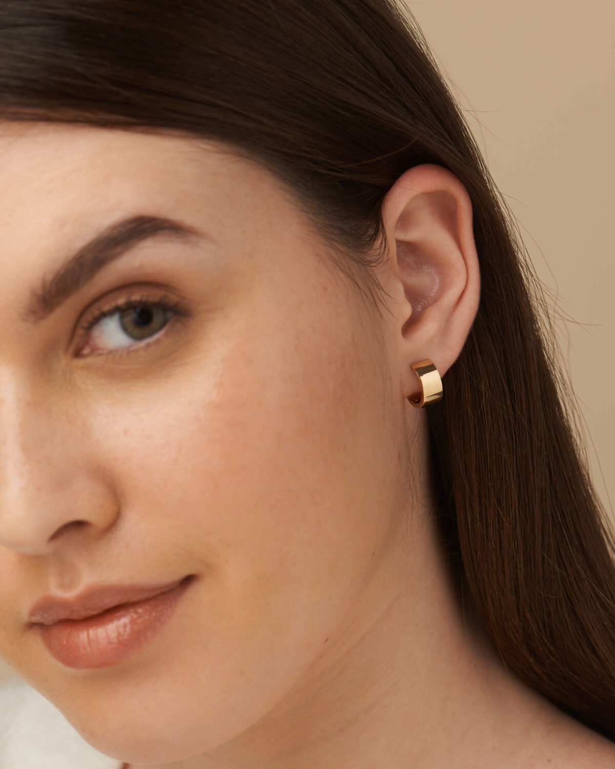 A must have staple for everyone. These Bold Gold Huggies make an effortless statement. Handcrafted in solid gold and finished with high polish.