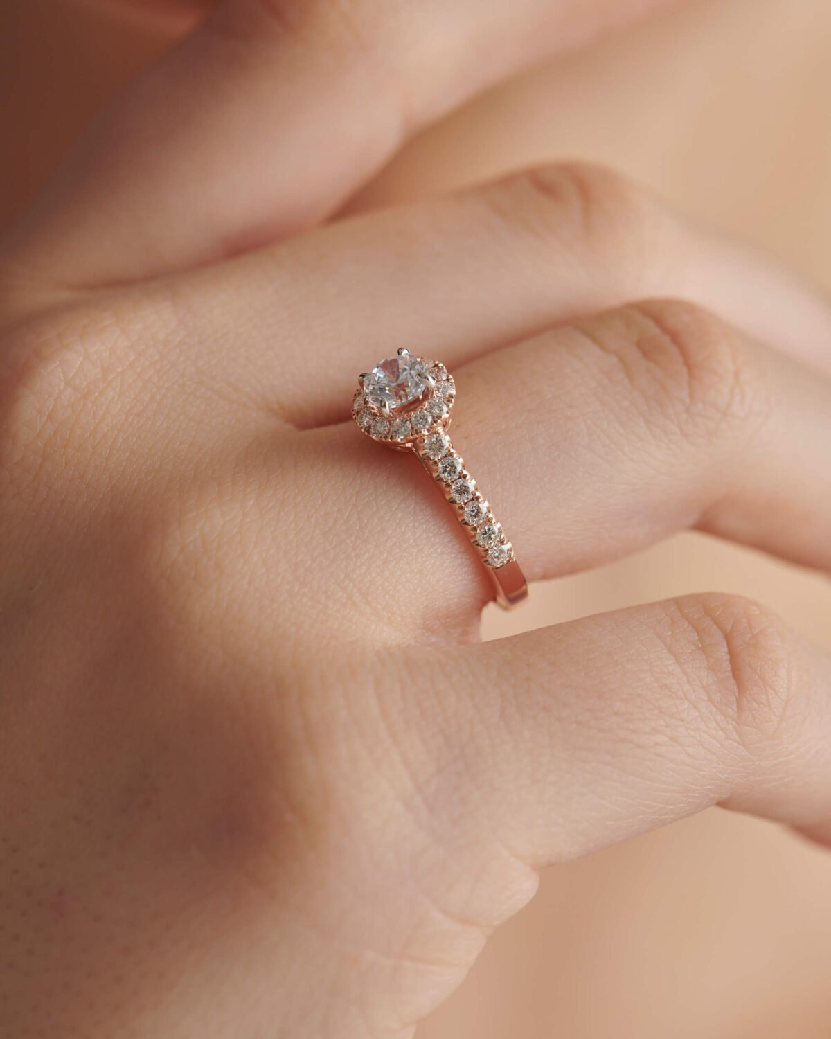 Classic Halo, Diamond Shank, Round Solitaire Ring
