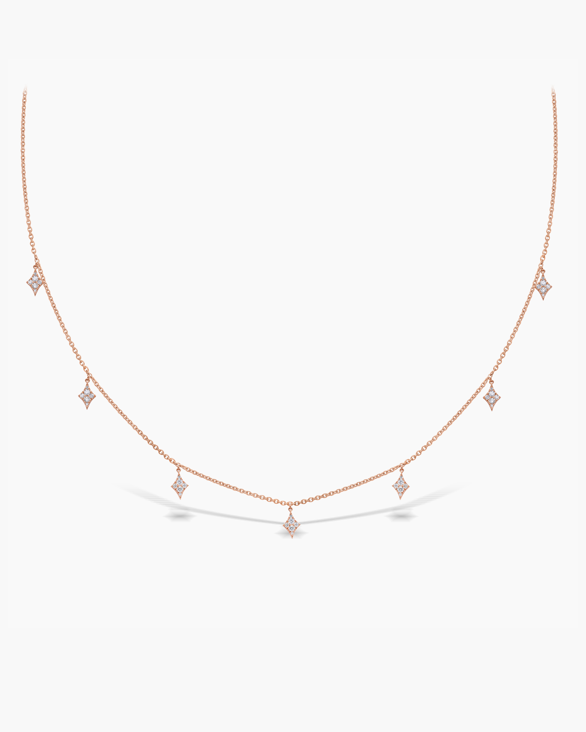 Sway along with this beautiful and dainty Dangling Diamond Kite Drop Necklace. This necklace features 7 dangling kite drops with shimmering micro pavé set diamonds. A perfect piece for your necklace layering game.